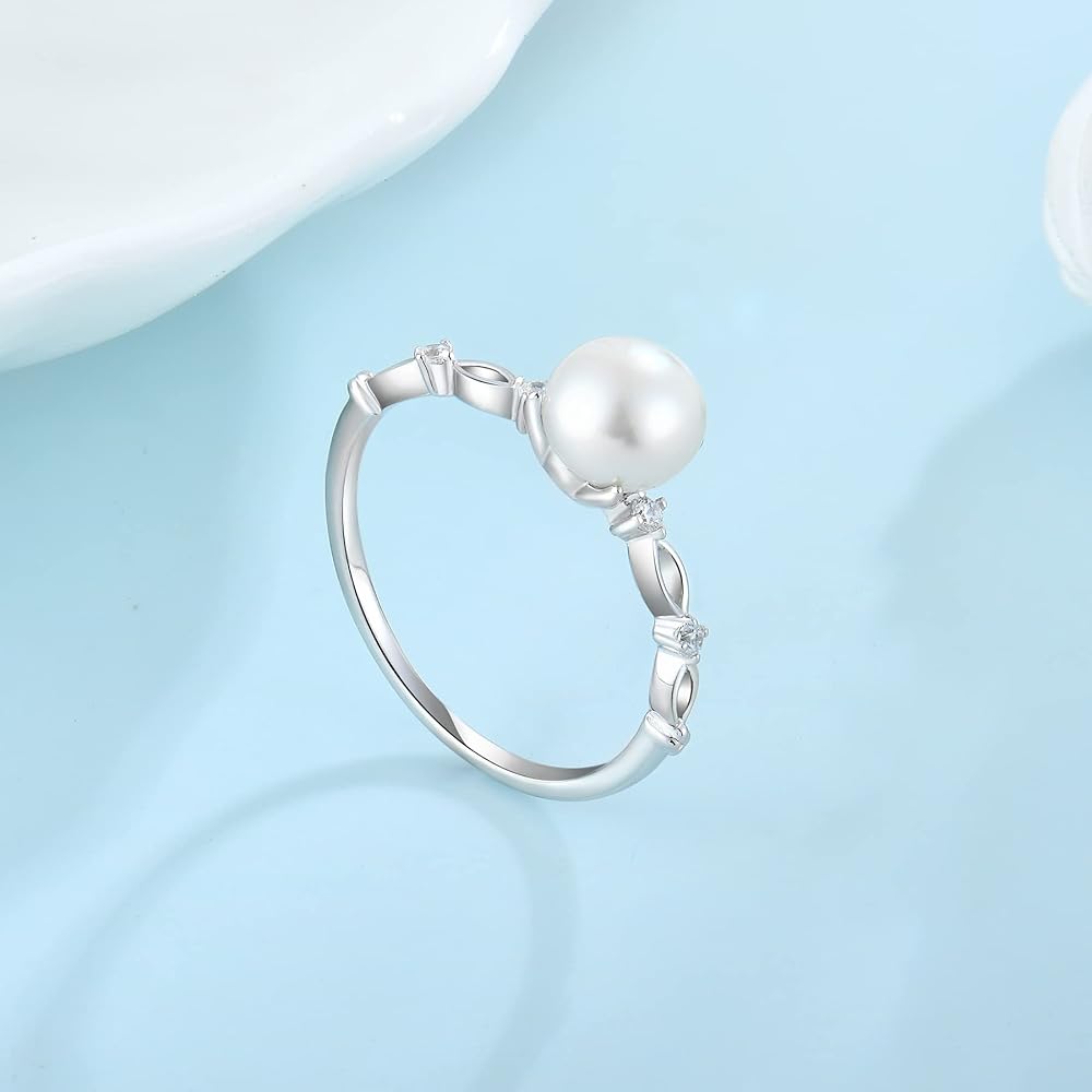 HAND-PICKED NATUEAL PEARL:7mm pearl,The pearl sits comfortably in the 925 Sterling Silver ring.This sophisticated and timeless ring features a beautiful white pearl. Leaving well rounded and smoother areas for the AAA mirror-like luster to capture the sparkles of the white pearl's glory. Any combination of the white Freshwater Pearl and 925 Sterling Silver Ring makes a lasting impression.