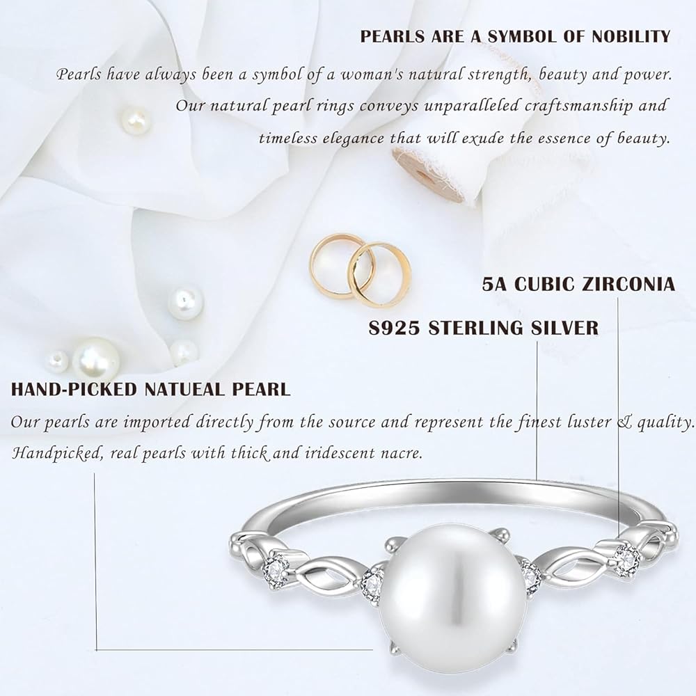 PEARLS ARE A SYMBOL OF NOBILITY:Pearls have always been a symbol of a woman's natural strength, beauty and power.Our goal is to create a true pearl ring for women that represents more than just what the eye sees.Our natural pearl rings conveys unparalleled craftsmanship and timeless elegance that will exude the essence of beauty.