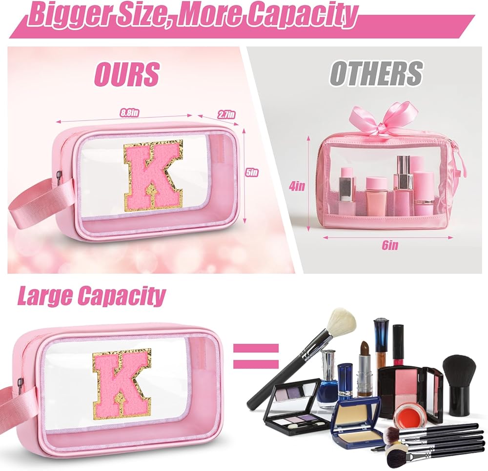 Personalized Makeup Bag: Unlike those ordinary cosmetic bags on the market, our letter clear cosmetic bag has 26 letter options for you to choose from, allowing you to personalize it with your initials or favorite word. This unique design not only makes the bag your own fashion accessory, but also makes it easy to identify your belongings and avoid confusion when traveling or at parties. Our cosmetic bags are more personalized than the same old products.