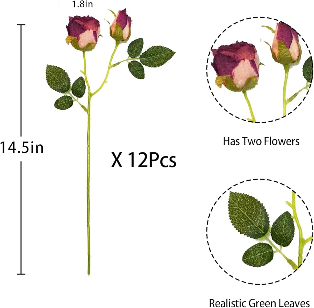 12pcs 24 Heads 13.7Iin Artificial Vintage Roses Fake Silk Rose Flowers with Long Stem for DIY Bouquets Wedding Centerpiece Party Home Kitchen Decoration (Fuchsia)