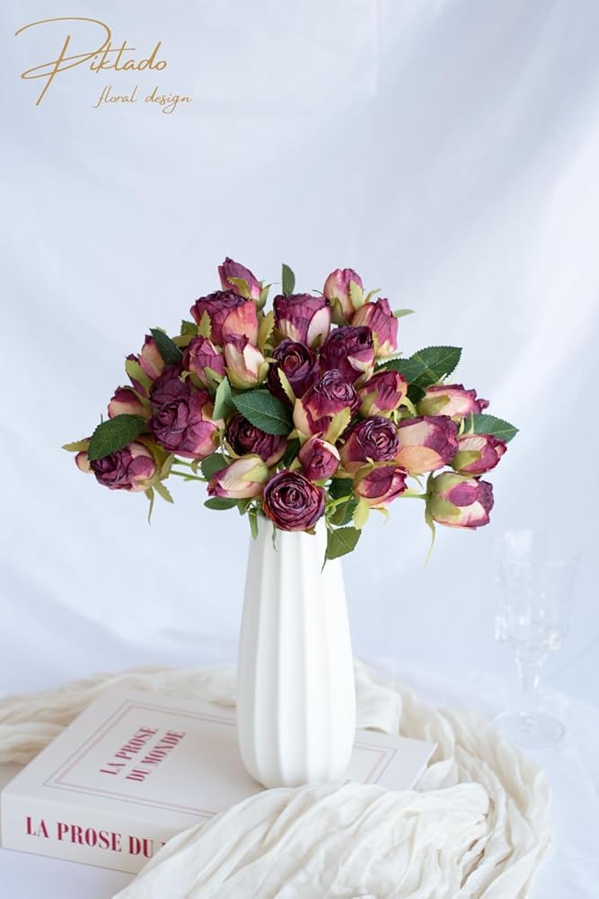Vintage Roses: The outer petals of our vintage roses are treated with a craft fire-roasting technique to give the simulated flowers the appearance of dried roses. However, our roses are easier to store than dried roses, and roses will be richer in color.