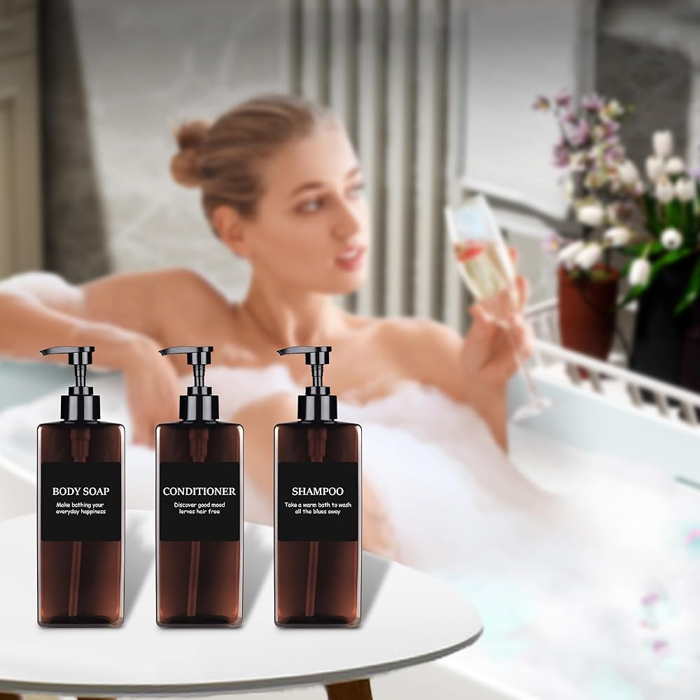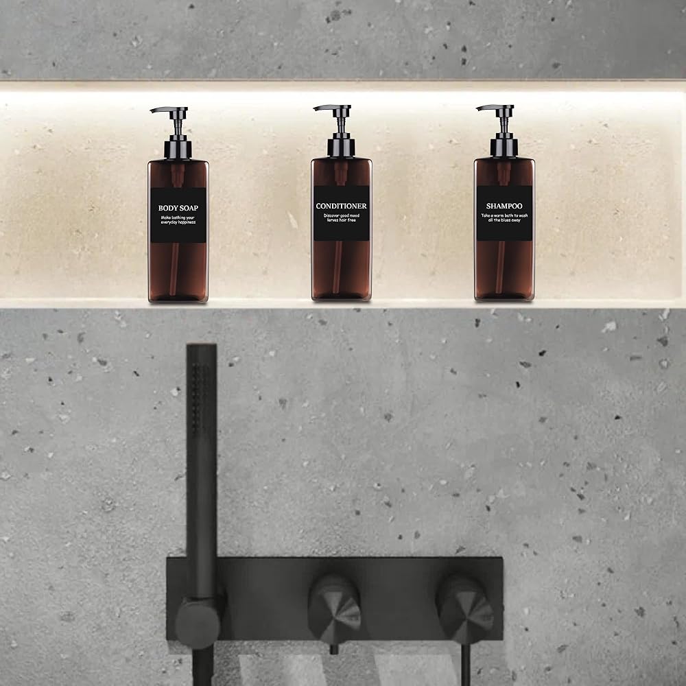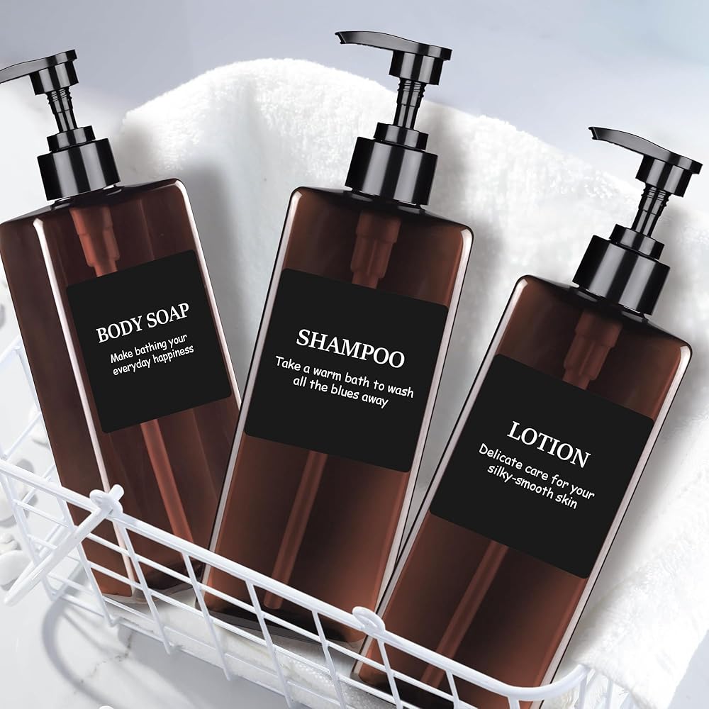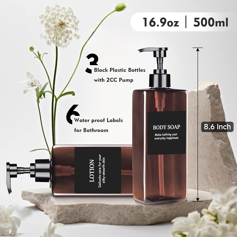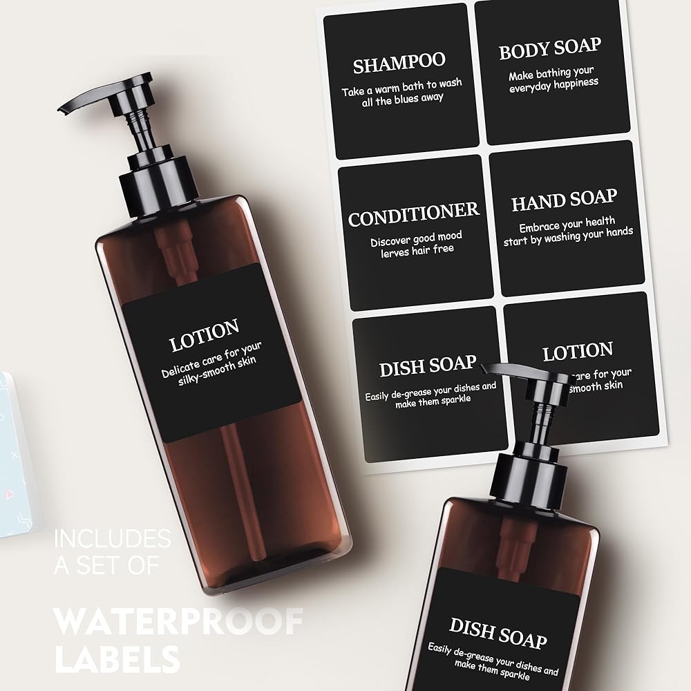 MEETS NEEDS: The large capacity 500ml shampoo bottle meets the daily essential needs of the whole family. Our dispenser bottles come with 6 waterproof sticker labels that you can attach to the bottle yourself for easy identification.