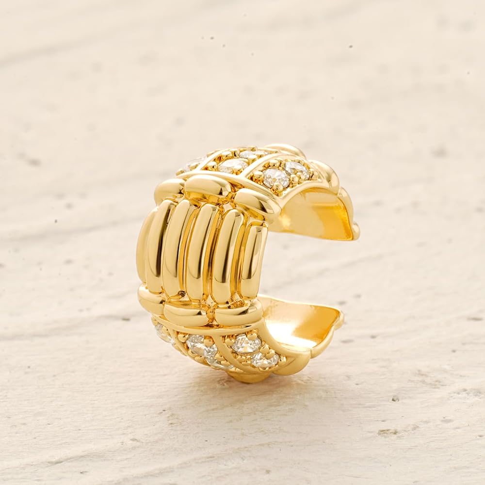MYEARS Women Ear Cuff Earrings Gold Non Pierced Cartilage Clip on Open Wrap Ribbed Hoop 14K Gold Plated Simple Hypoallergenic Everyday Jewelry