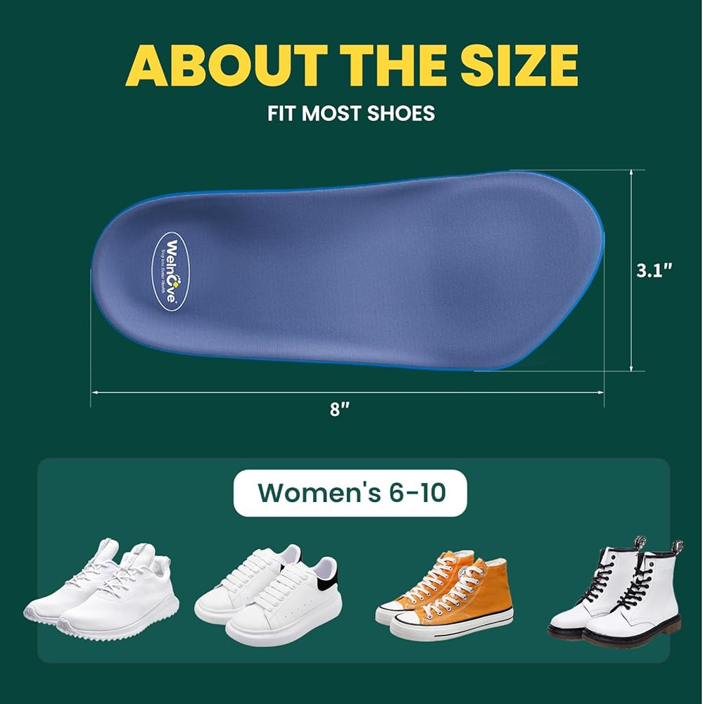 Alleviate Foot Pains: Our Welnove 3/4 Shoe Insoles are designed to conform to ergonomics and provide comprehensive relief from various heel-related issues like plantar fasciitis, Achilles tendinitis, heel spurs, heel pain, and heel bursitis. Enjoy support, cushioning and alleviate foot and heel pain, including for prolonged standing or physical activity.