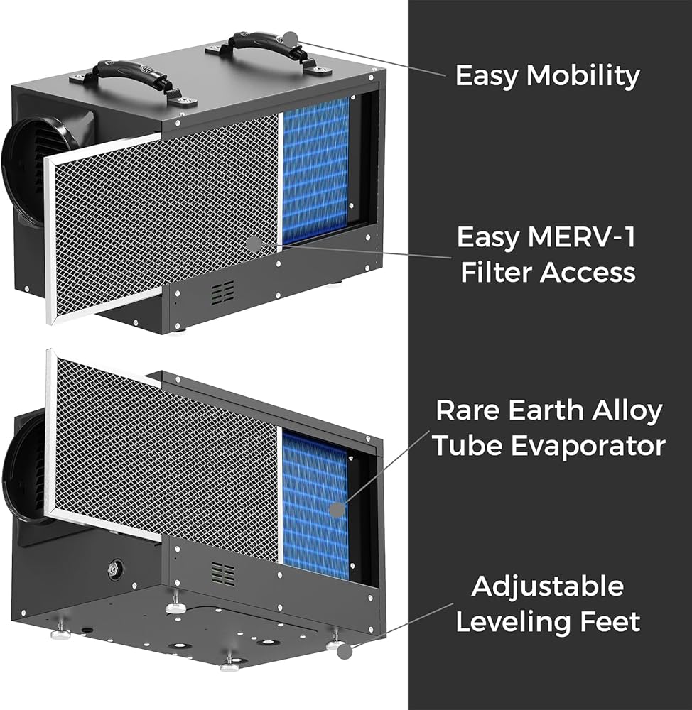 Designed for the Modern Home: For your satisfaction, we designed this professional dehumidifier with the modern consumer in mind. All special features make it the best for crawlspace, basement, and commercial applications, auto defrosting system, optional Remote control system, MERV-1 filter, Low-temperature operation, cETL Listed.