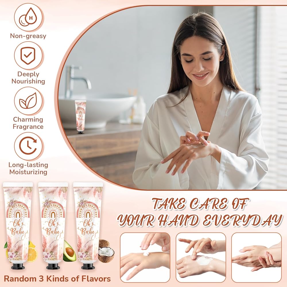 Perfect for Baby Showers: not just for baby showers, these travel size hand creams can be packed into gifts, perfect as party favors, gifts, birthdays, gender reveal parties, festivals or even just for personal daily use; A wonderful gift for yourself, parent, wife, grandma, sisters, friends, coworkers or for a loved one to express your care and love