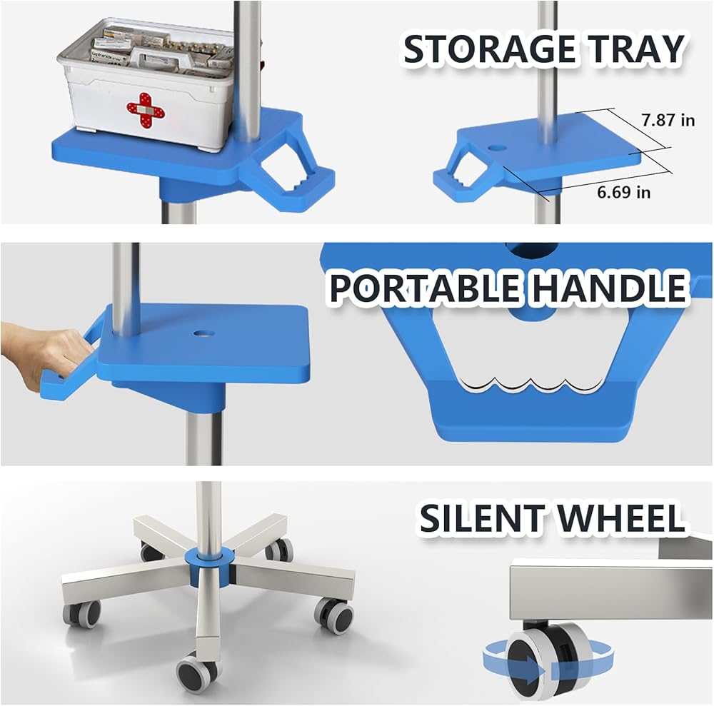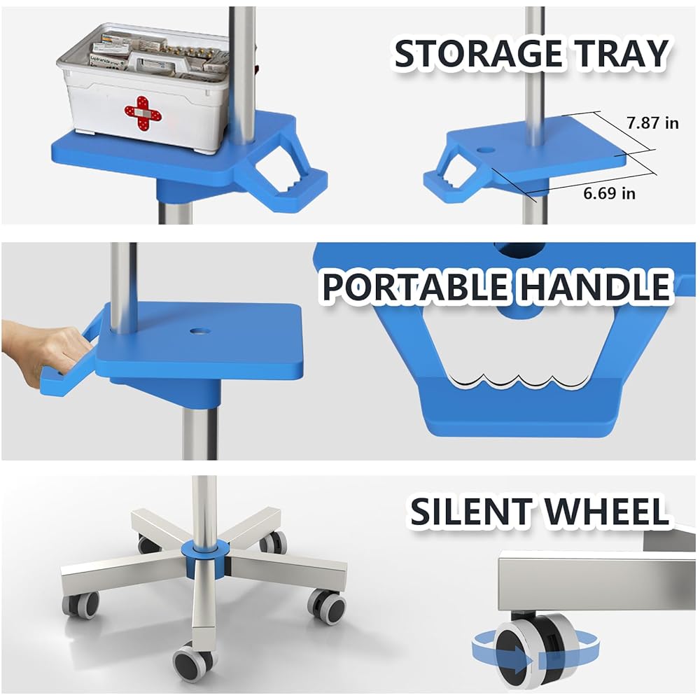 【Portable Cleaning and Maintenance】Parts such as hooks, trays and wheels of the IV Pole with Wheels are designed to be easily disassembled and installed. Regular maintenance and cleaning can be carried out by oneself without the need for professional tools.