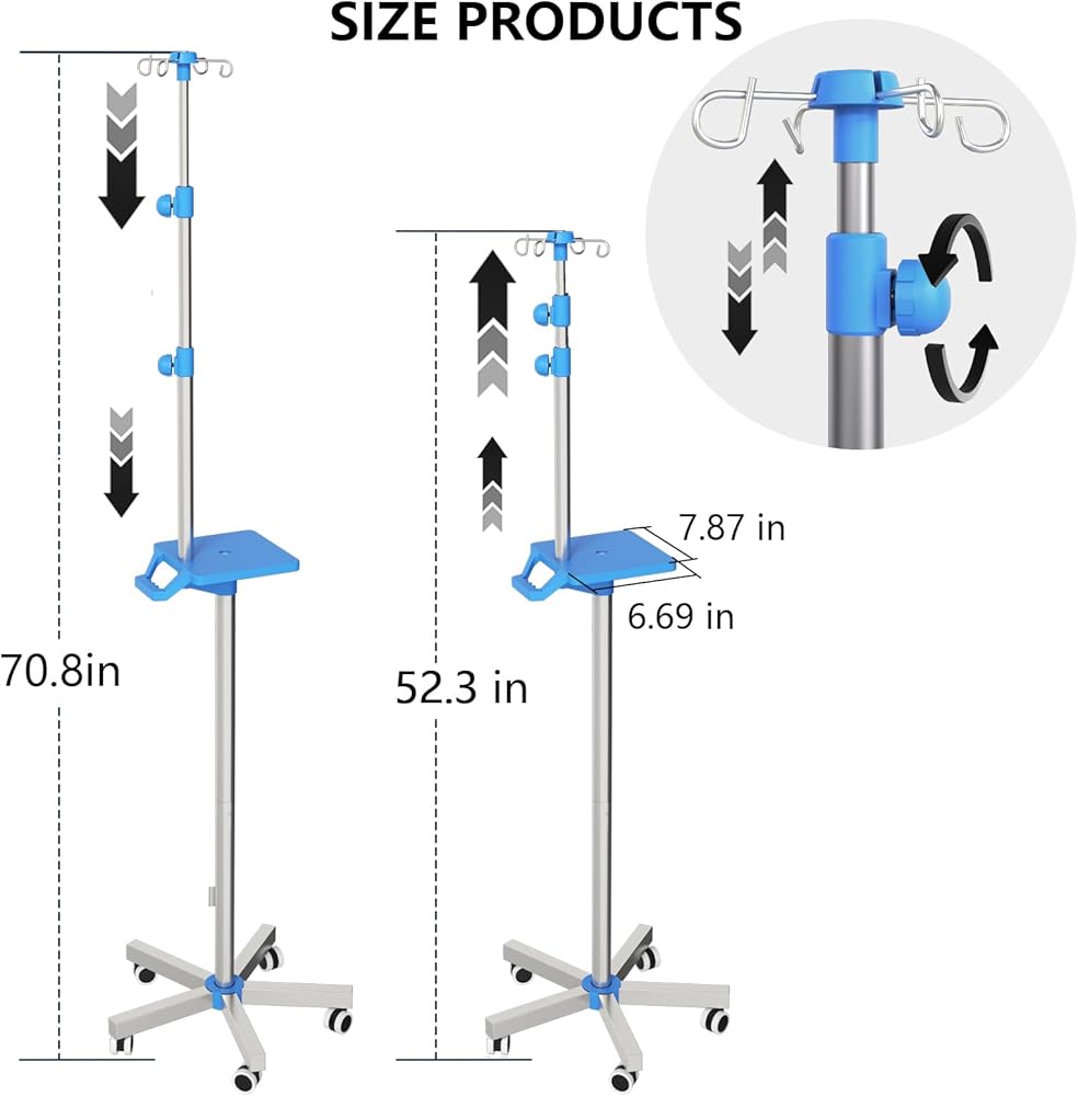 【Precise and Portable Height Adjustment】The height adjustment range of the IV pole is 52 - 67 inches. By rotating the knob, the height can be precisely controlled and locked easily. It can be adjusted to the suitable height within seconds to match the most comfortable height for users and improve work efficiency.