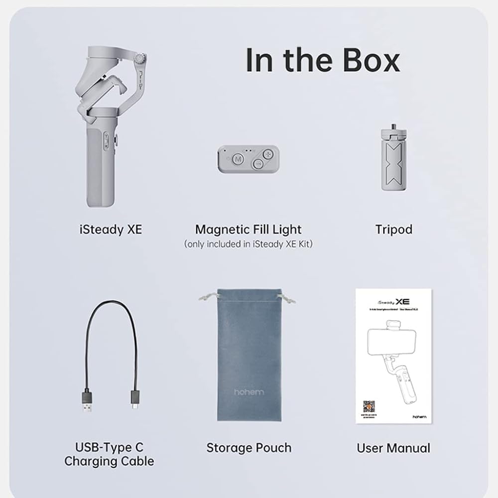 hohem iSteady XE Kit Gimbal Stabilizer for Smartphone 3-Axis Cell Phone Handheld Gimbal with Fill Light,Stabilizer for iPhone&Android Lightweight Youtuber Vlogging Live Stream