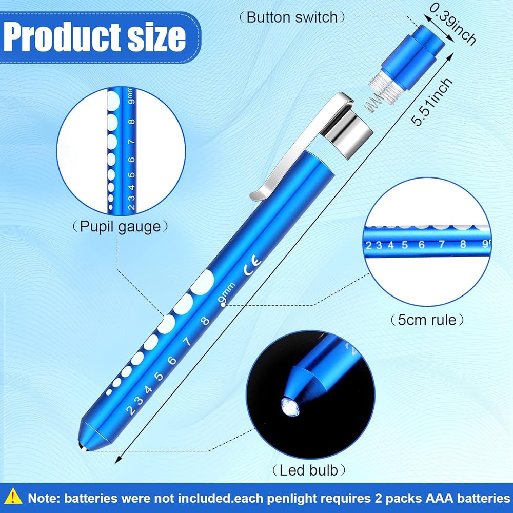 Nurse and Doctor Gifts: the nurse penlight is made of aluminium alloy and LED bulb, which make it serviceable and long life using, safe and no harm to skin and body, one-button on/close, which is easy to detach and install the penlights