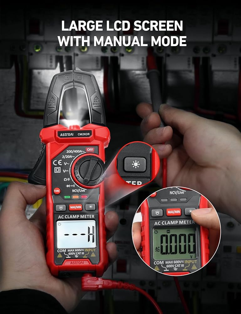 Versatile Digital Clamp Meter: Accurately measures AC/DC Current, AC/DC Voltage, Capacitance, Frequency, Duty Cycle, Resistance, Diode, Continuity and Live Wire Tests. This clamp meter is a really useful tool for solving industrial and household electrical issues.