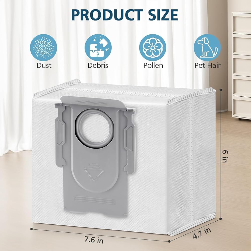 【EASY TO USE】: Our S7 MaxV Ultra dust bags are very easy to replace and maintain. Just take off the full dust bag and install the new dust bag along the holder slot. The push-pull handle design is flexible, with no need to touch dust when changing. Please replace the dust bag every 1-2 months to keep your robot vacuum in optimal working condition