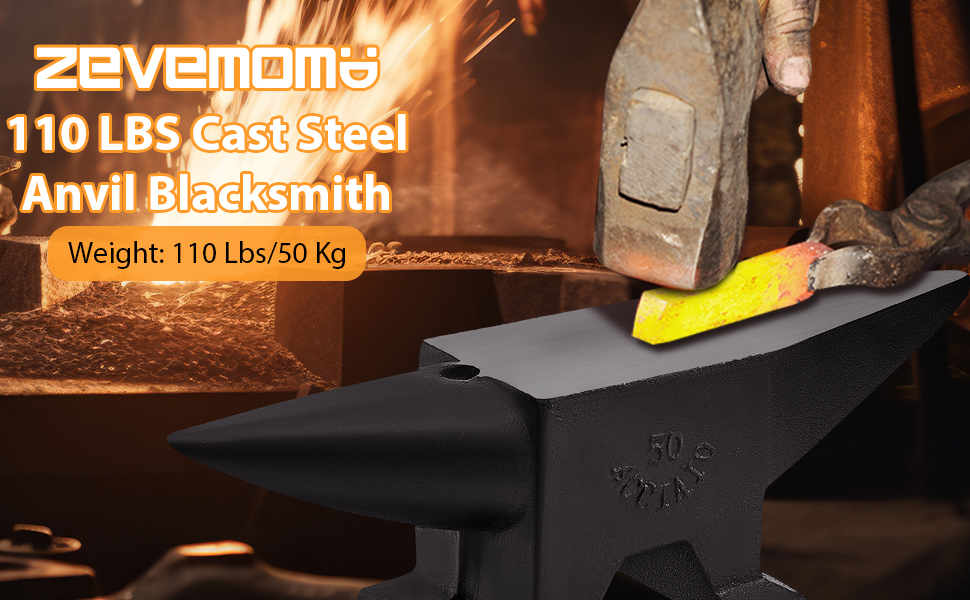 【Sturdy & Durable】Our 110 lbs cast steel anvils for blacksmithing is constructed from durable cast steel, providing strong hardness (HRC55), strength and durability. Its solid base ensures reliable stability during use.