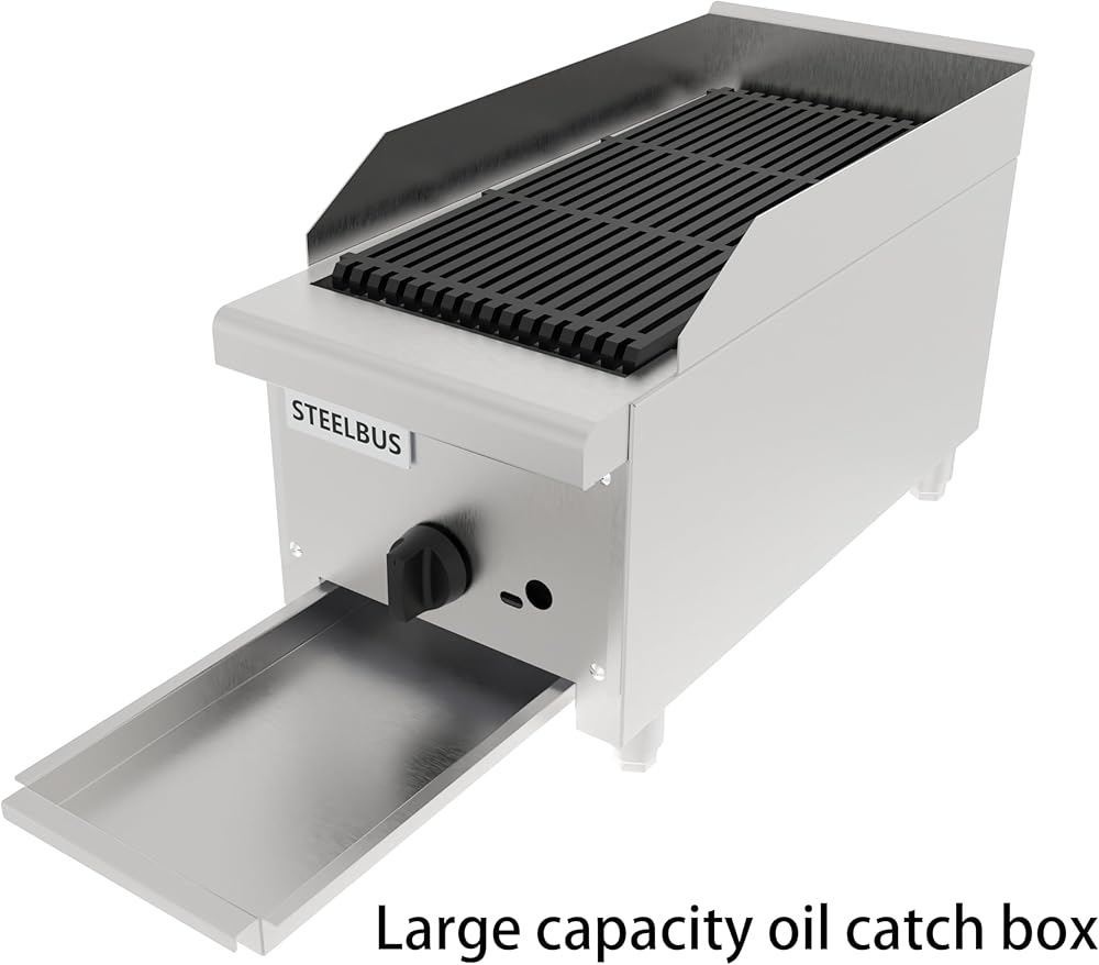 12 Inch Commercial Gas Lava Rock Charbroiler, Countertop Stainless Steel Grill with 1 Burner 28000 BTU, Natural Gas/Propane, Durable Cast Iron Grates, Restaurant BBQ Broiler