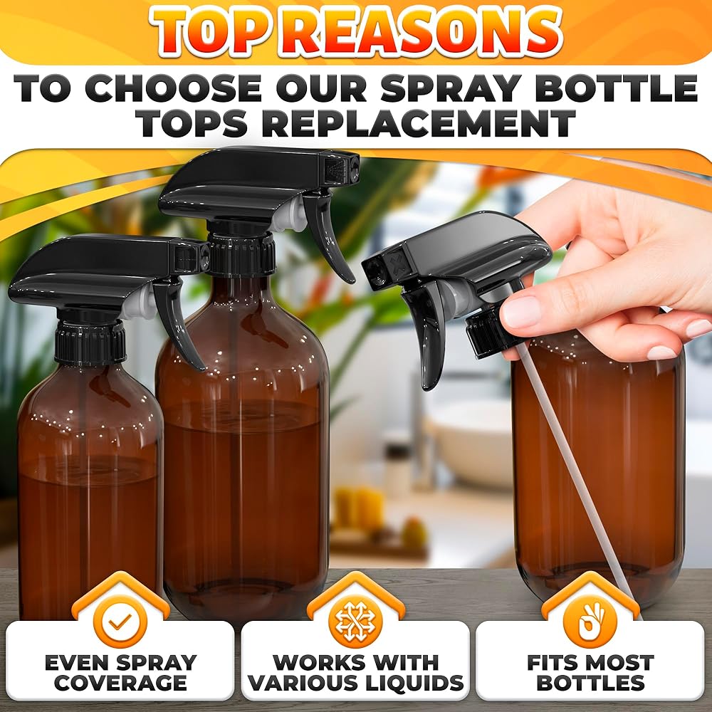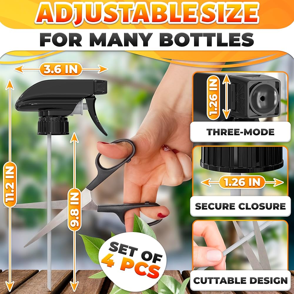 💦Package Includes: The package contains 4 spray bottle sprayer replacement tops, measuring 3.62 in wide and 9.84 in tube tall. This spray bottle top fits perfectly on 8 Oz and 16 Oz bottles