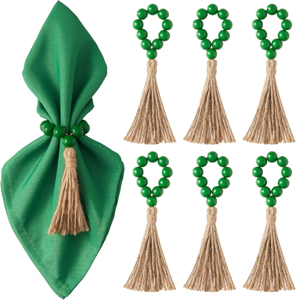 Exquisite Table Decorations - You will receive Christmas table decor wooden napkin rings set of 6. Each Christmas napkin rings measures approximately 6.1 inches/15.5cm in length, featuring 10 beads. The tassel length is about 3.53 inches/9cm, providing a suitable size that accommodates most Christmas cloth napkins. With an abundant quantity in each set and caters to a lot of your styling needs. Elevate your table aesthetics with these exquisite table decorations!