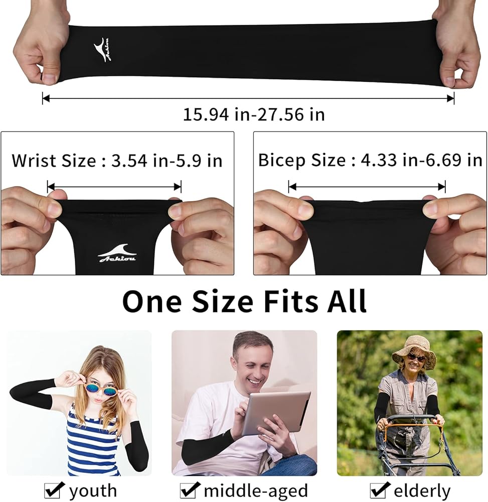 💪Ice Silk & Cooling Sleeve——Achiou arm sleeves for women are made of premium and cooling ice silk. It is smooth, cool and anti-uv because it has better hygroscopicity and breathability than ordinary materials. Performs well in cooling your arms quickly even if you're doing exercises
