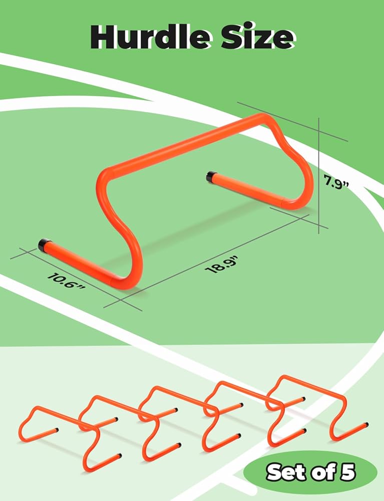 10-Pack Speed Training Hurdles:You will get 10 packs agility hurdles that come with a portable carry bag for easy storage and carrying,allows you for training on-to-go.The size of per hurdle is 19x10x7.8",which is perfect for a variety of training routines and ensures that you'll have the ideal training experience