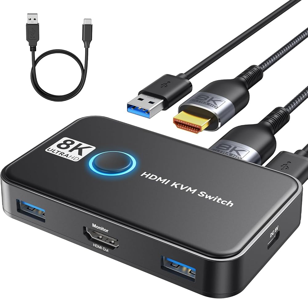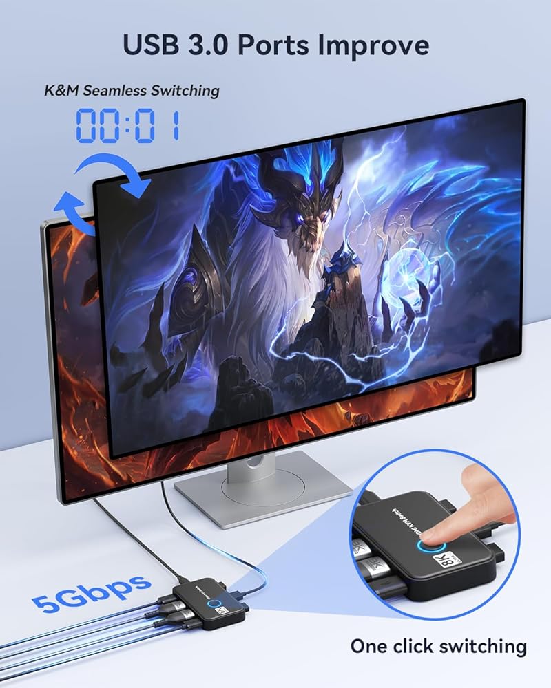 【Spectacular Ultra HD 8K@60Hz Visuals】Witness superior image quality with the HDMI USB KVM switch supporting 8K@60Hz resolution. With KVM switch 8K 60Hz, every color becomes brighter and more vibrant, bringing you a three-dimensional and ultra-realistic visual feast. Ideal for those seeking the "best KVM switch" on the market