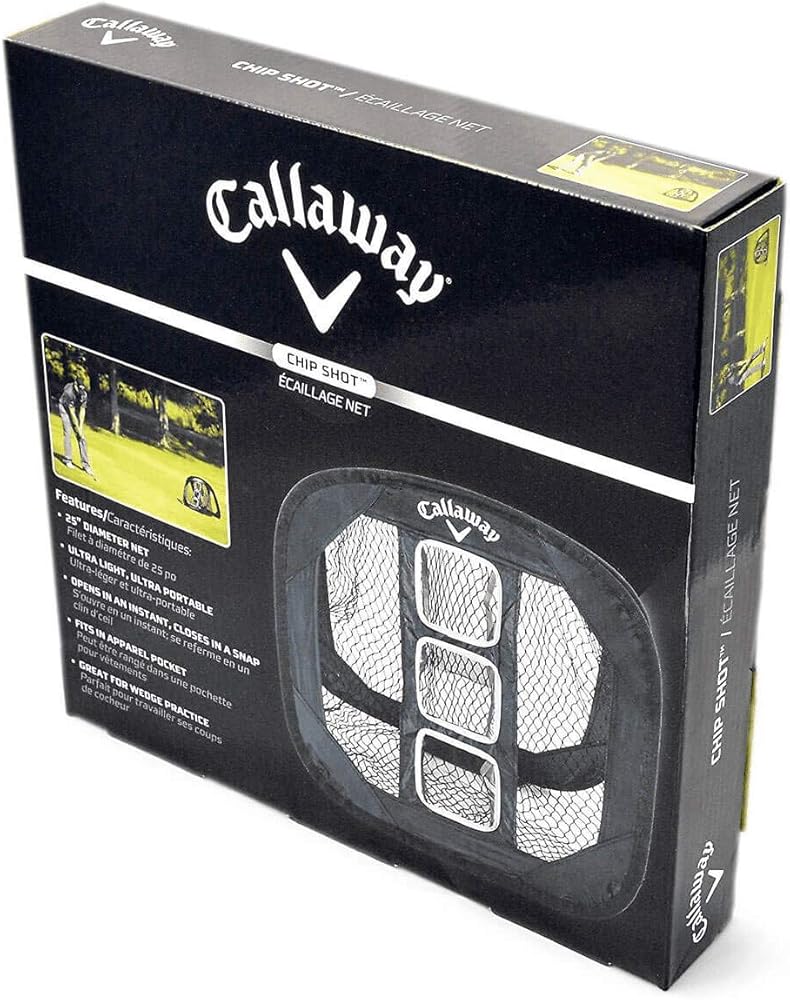 Dial-in your short game with the Callaway Golf Chip-Shot Chipping Net. This training aid features three primary targets running vertically down the center, allowing you to work on various types of chips and pitches from a range of distances and trajectories. Its ultra-lightweight, portable design allows you to quickly pack it up and take it wherever you're going without any hassle. Forget about the other more complex and confusing golf training nets that take forever to set up. The Callaway Chip-Shot takes seconds to set up with its unique “pop-up” feature and easily collapses into a 12-inch diameter. It's the perfect training aid for your short game practice, whether you're working indoors or outdoors.