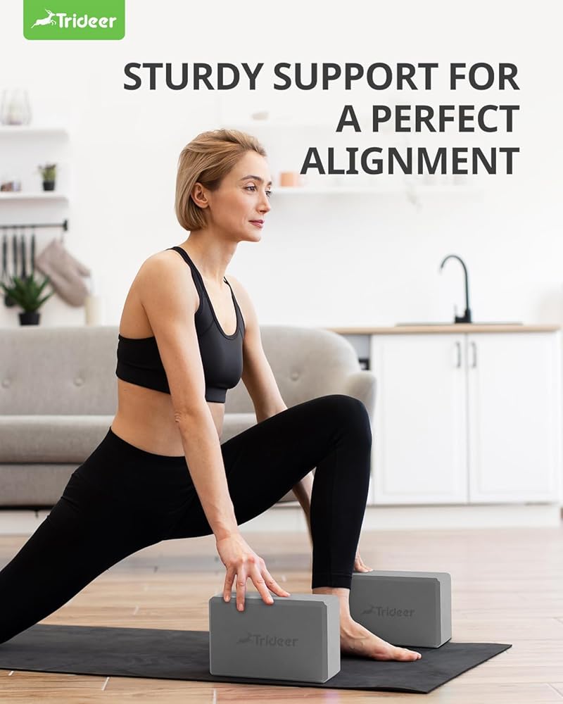 Trideer 9"x6"x3" Yoga Blocks, High Density EVA Foam Blocks 2 Pack, Supportive, Lightweight & Odor Resistant, Yoga Essentials and Accessories for Yogi & Yogini