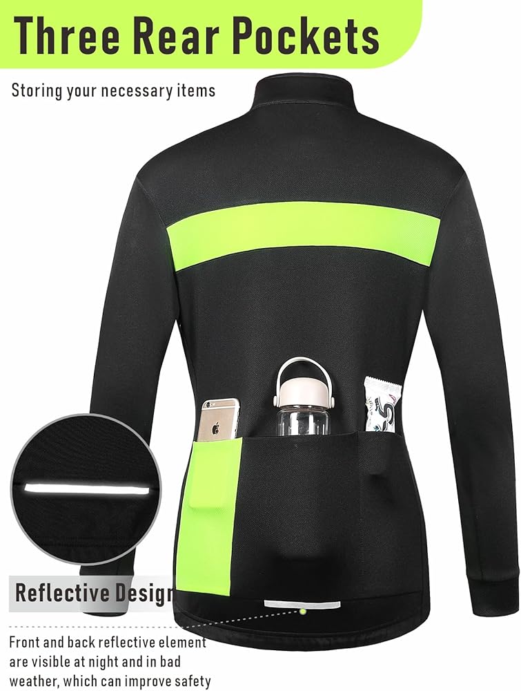 【Pockets and Reflective Design】Professional cycling shirt design. 3 rear pockets provide ample space for ride essentials, such as energy bar, water, wallet and cell phone. Reflective strip on the back, which can enhance visibility in low-light condition, keep you safe in the darkness