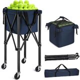 【Easy to Carry & Store】-- Our tennis hopper is very easy to fold, quick to set up and take down, and can be easily stored in the attached carry bag for maximum portability and convenience for players, parents and coaches. The foldable design allows it to easily fit into a car, bike or storage rack. Unlike heavy metal tennis baskets, you can effortlessly take our lightweight aluminium tennis cart anywhere.