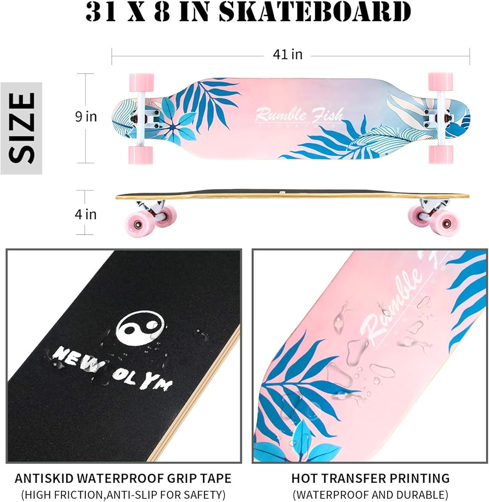 FIT FOR ALL LEVEL SKATERS: 41 x 9 inch full size design, this Skateboard is fit for beginner and professional to perform some basic stunts and other skills