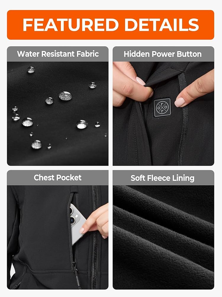 ORORO Women's 5 Heat Zones Softshell Heated Jacket with Battery, Fleece Lined Heated Jacket (Charger Not Included)