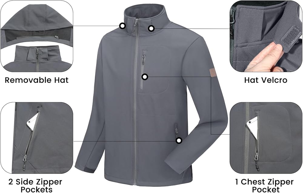 REMOVABLE HOOD & 5 POCKETS - The hood is removable and can be worn freely. 2 side zip-up pockets, 1 chest zip-up pocket, 2 inner pockets keep your stuff safe and secure.