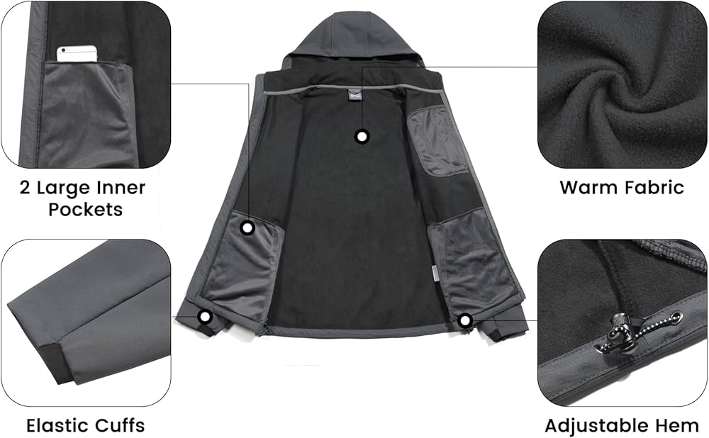 MOVE FREELY - Shell is made of 4-way stretch fabric, allows a wide range of motion or layer beneath. You won't feel any restriction.