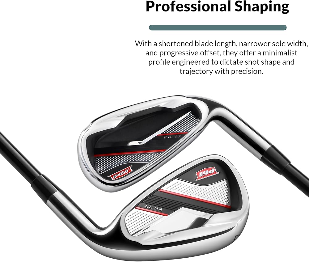 Professional Shaping: Crafted for the world's top ball strikers, the PG-77 Irons demand surgical control and precision shot-making. With a shortened blade length, narrower sole width, and progressive offset, they offer a minimalist profile engineered to dictate shot shape and trajectory with precision."