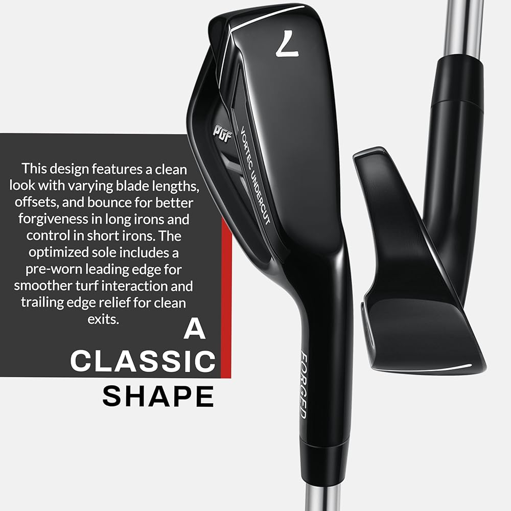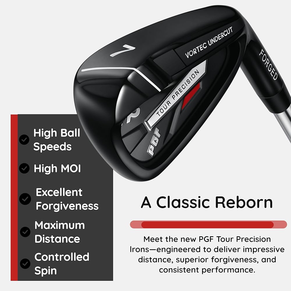 A classic reborn: Meet the new PGF Golf Gold TP Irons, meticulously crafted with cutting-edge technology and tailored to meet the demands of serious golfers. Forged from premium carbon steel and precision-machined to perfection, these irons offer the consistent speed and feel players desire. Enhanced with low-profile hosels, they redefine the standard for excellence on the course.