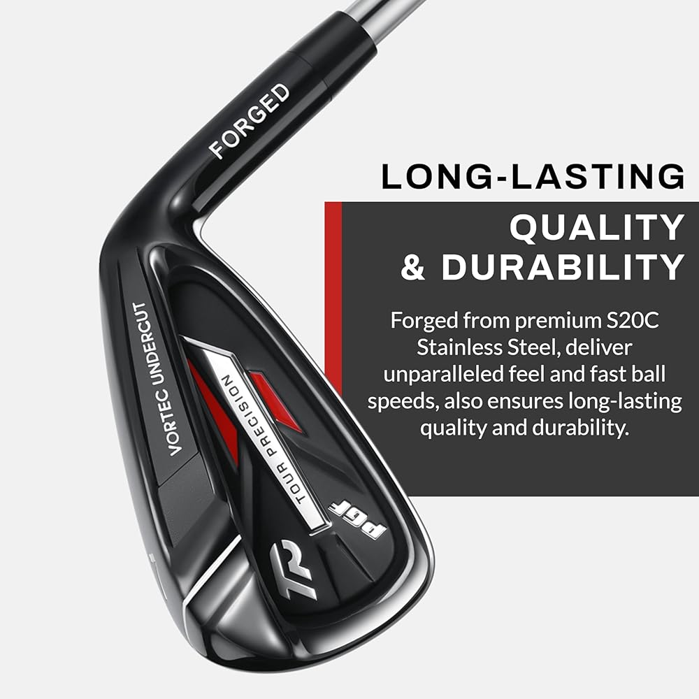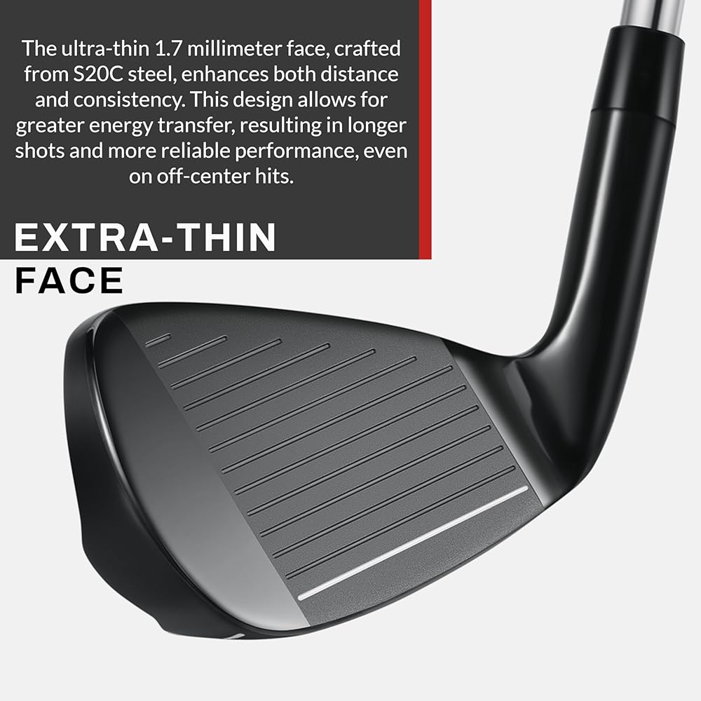 Forged from premium Carbon Steel, these irons deliver unparalleled feel and consistently fast ball speeds across the sweet spot. The high-grade stainless steel construction ensures long-lasting quality and durability.