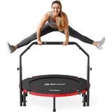 Foldable Frame Base: With unique foldable design, BCAN rebounder trampoline can be folded size less to 1/4 after removing handle and legs. Easy to storage your mini trampoline anywhere, bed, sofa, car trunk, closet, etc