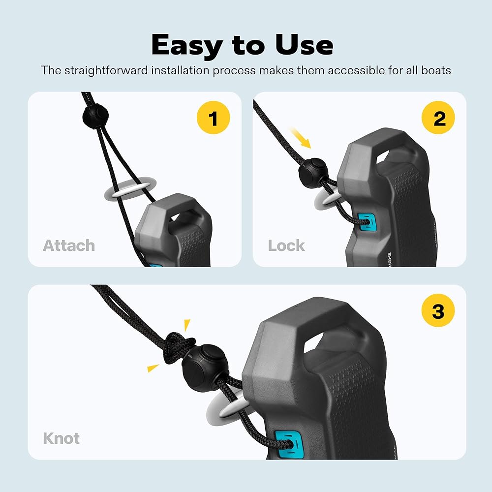 SIMPLE INSTALLATION - Utilizing locks, the strap easily attaches to the boat dock or deck; Designed with a modular structure, the installation and removal processes are convenient; Boat owners can effortlessly adjust it as needed using cables and locking structures