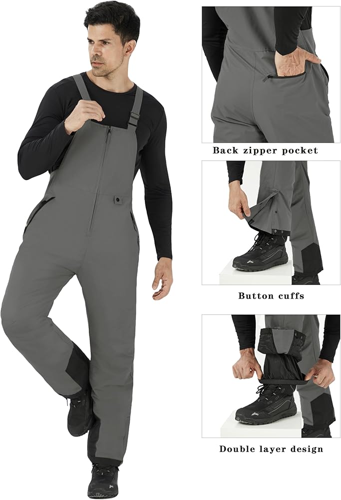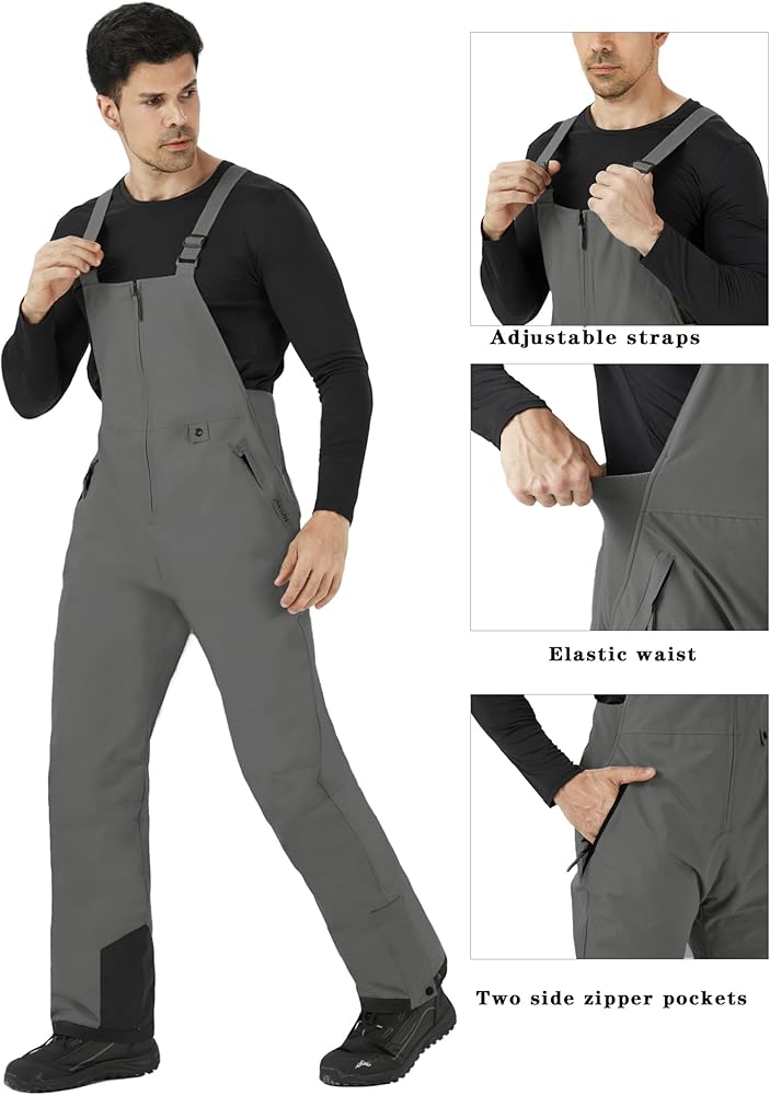 Waterproof Men Snow Bibs:Professional water-repellent coating,prevent water infiltration.keep you dry while skiing or snowboarding.Besides,the zipper is also waterproof and smooth,give you professional protections.
