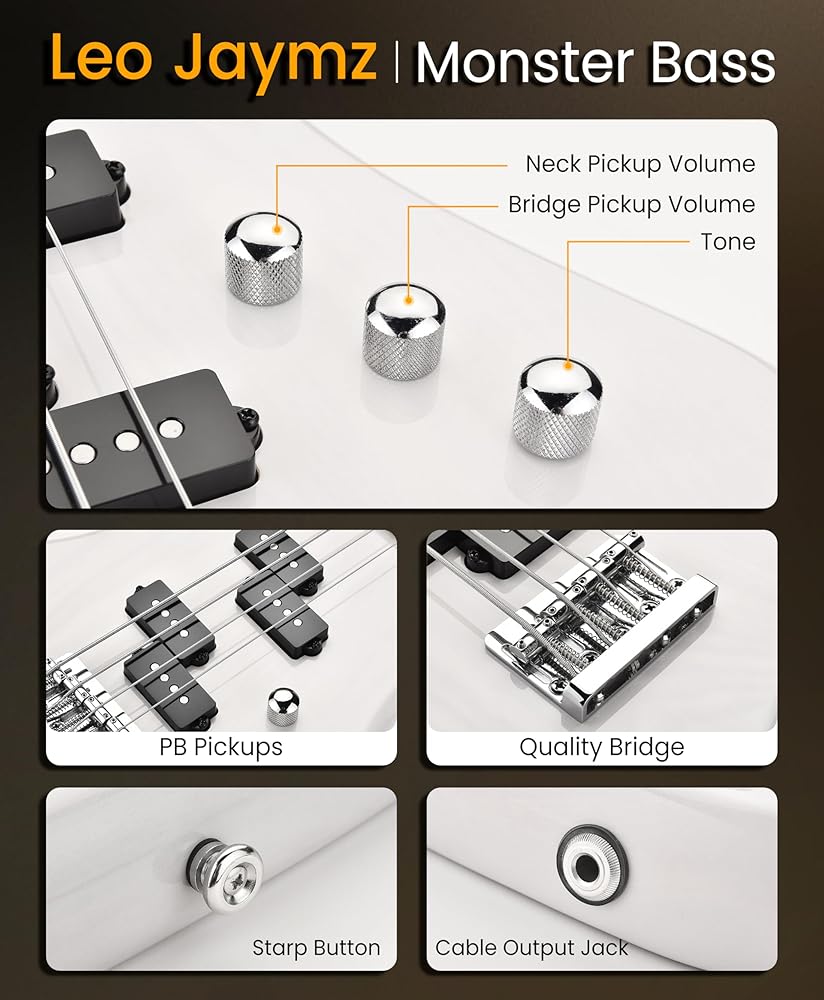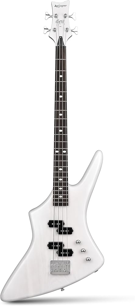 Leo Jaymz Monster 4-String Bass Guitar - Dual PB-Style Pickups, Solid Ash Body, Ebony Fingerboard, Transparent White Gloss
