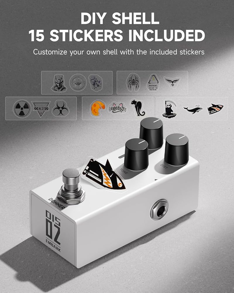 【DIY Shell】With the included stickers or other decorations which you had already, you can freely express your creativity and practice your imagination, customize your own guitar pedal shell