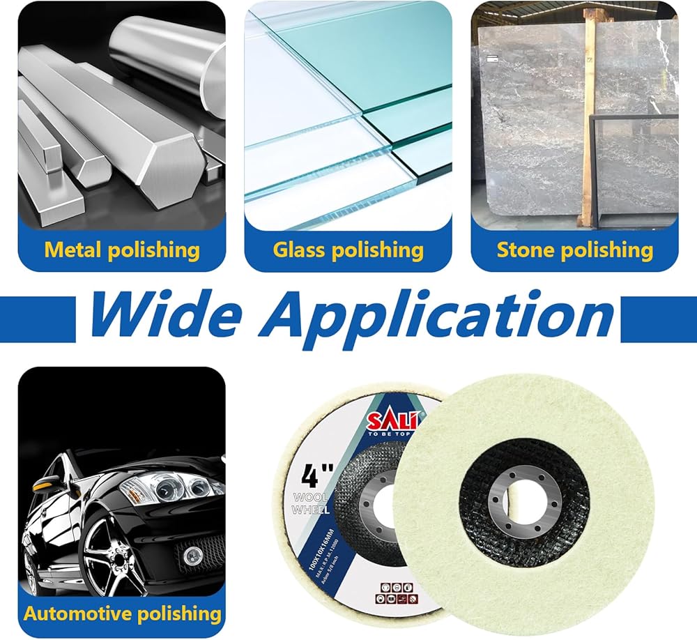 Size:Wool felt buffing wheel pads diameter : 4 inch, 5/8-inch arbor, fit for 4 inch Angle Grinder,thickness:8mm