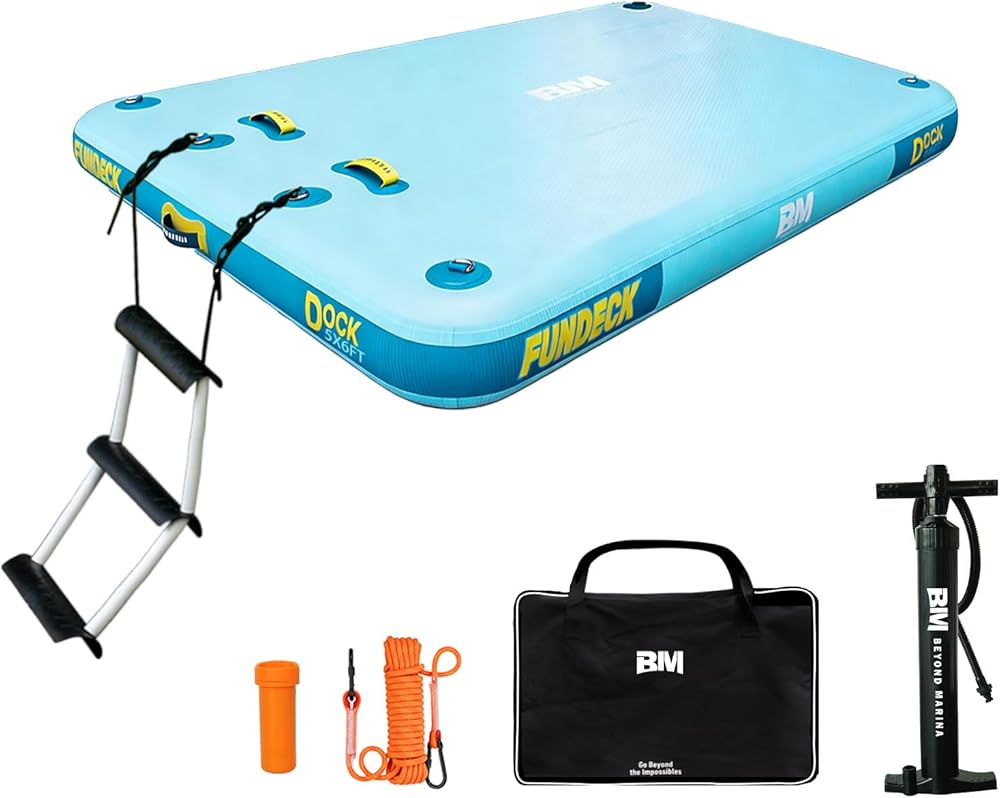 BEYOND MARINA Inflatable Floating Dock, Water Float Platform, Floating Island Dock Pad for Lake, Pool, Ocean Water Play, Carry Bag, Repair kit, 8 x 5ft / 10 x 8ft
