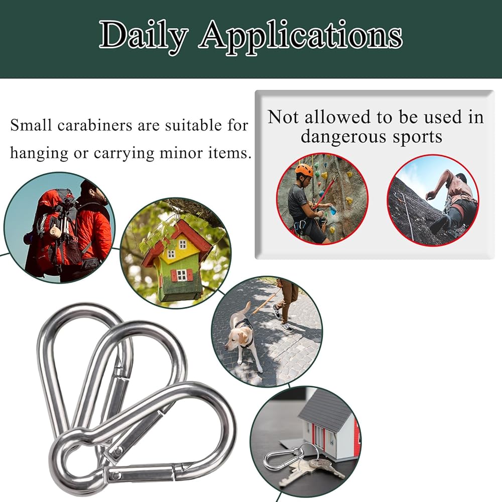 100PCS Small Carabiner: Spring clip have undergone thousands of tests to ensure their quality and reliability , they boast long-lasting durability, easy open and close,you can open it with one hand.