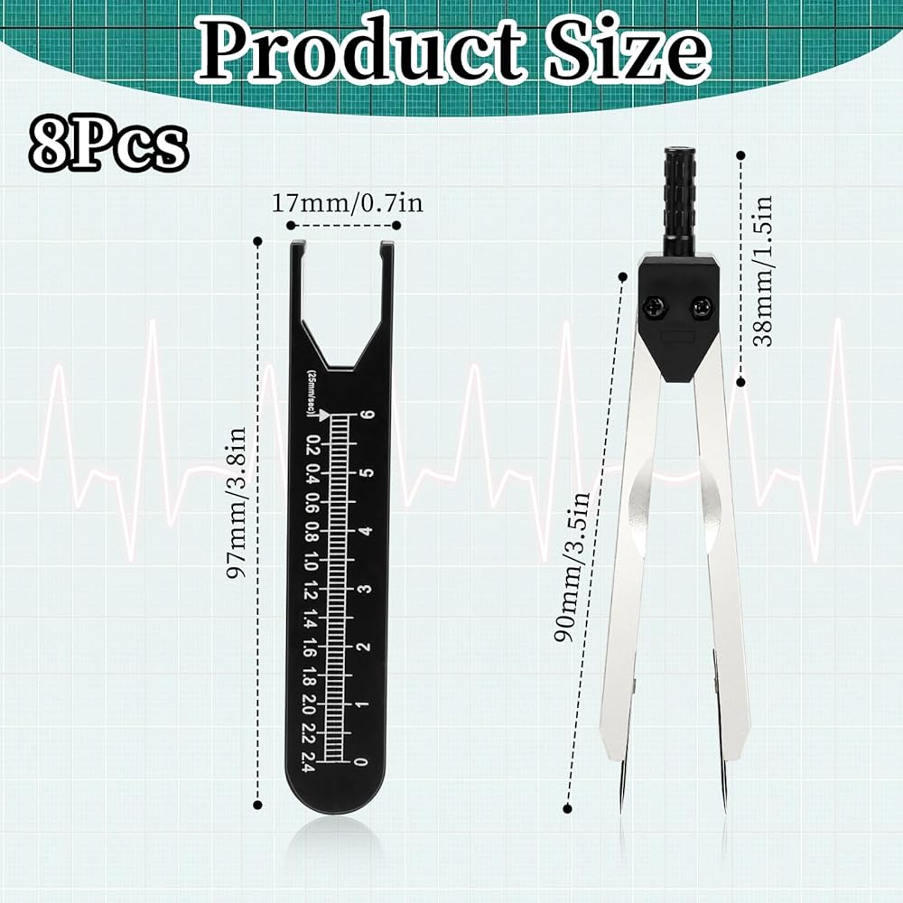 8 Pack EKG Calipers ECG Caliper Metal Electrocardiogram Divider with Ruler, Electrocardiography Measuring Tool for Doctors, Nurses, Nursing, Medical Student Essentials - Black