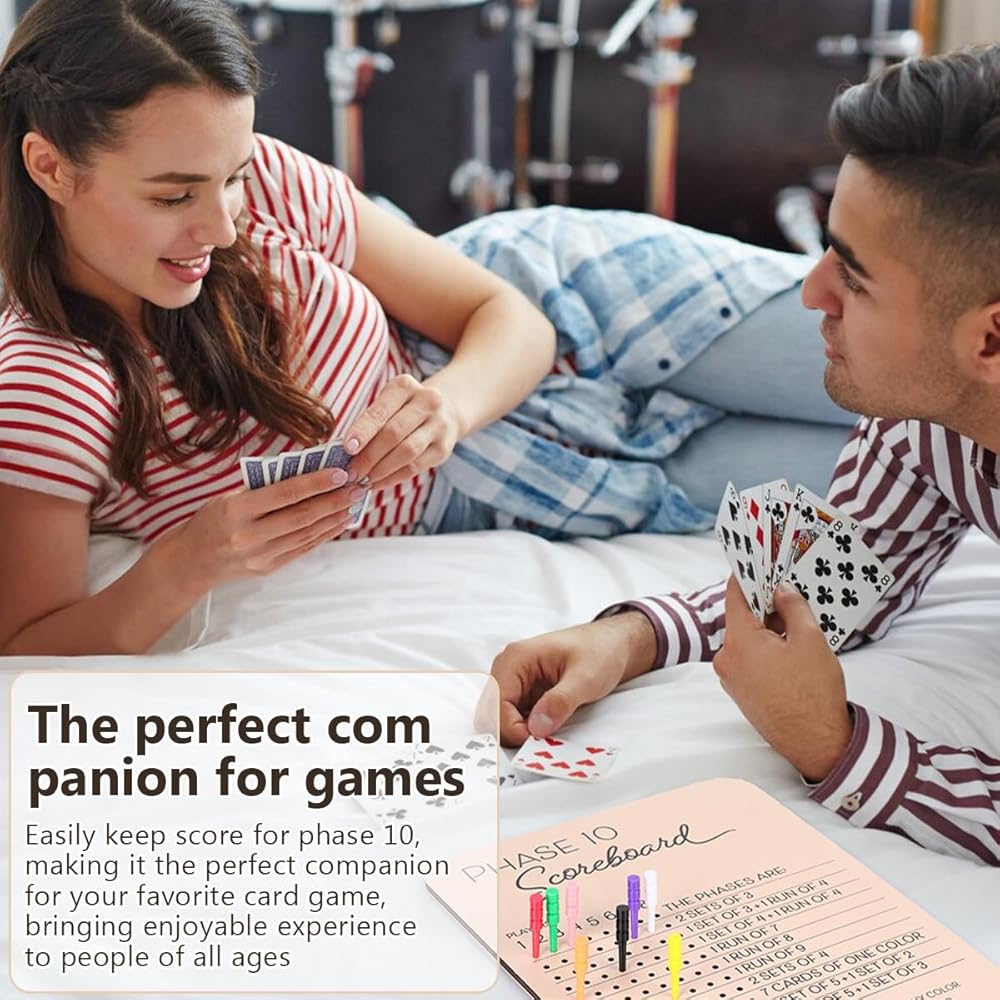 【Simple and Easy to Use】Our phase 10 score board ensures that everyone is involved in the game to share good times together! Say goodbye to flimsy paper score sheets and enjoy a premium scorecard that elevates the fun and excitement of family game nights