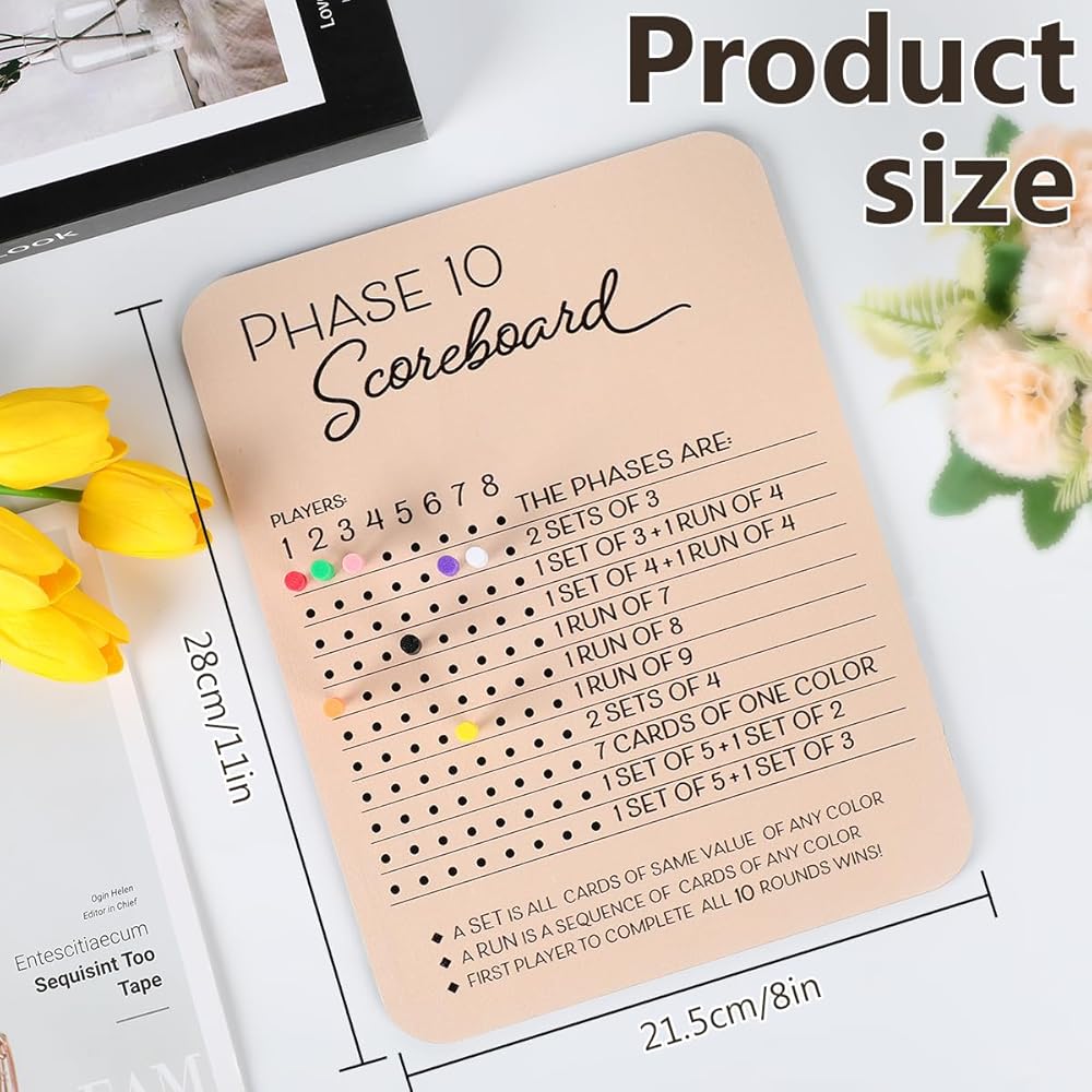 【Funny Gift】Surprise phase 10 score board enthusiasts with this innovative game scoreboard! With its clever and practical design, it makes a great gift for birthdays, holidays, or any occasion that calls for an enjoyable game