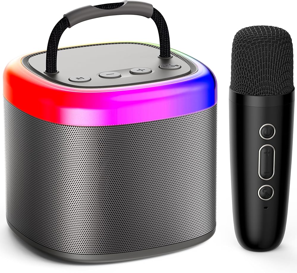 JYX Mini Karaoke Machine for Kids - Black Bluetooth Speaker Unpowered Cabinets with Party Lights and 1 Wireless Microphone, Great for Adults, Ideal for Family Home Parties and Birthday Gifts