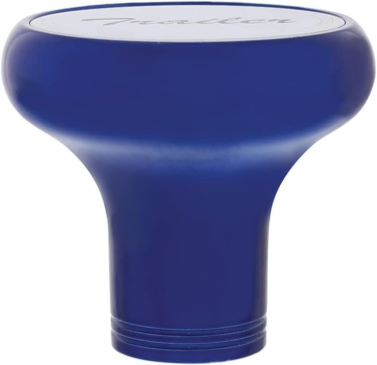 UNITED PACIFIC 22969 Air Brake Valve Control Knob, Trailer, Deluxe, Aluminum, Screw-On, with Stainless Plaque, Indigo Blue