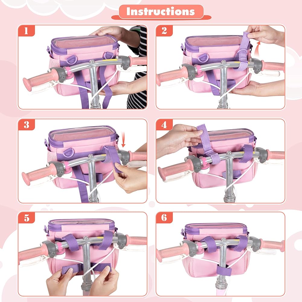 EAST TO INSTALL: The back of bike bag come with three adjustable hook and loop fastener straps which can form a triangle fixation to avoid shaking (no tools required), fit for most bicycle, scooter, handlebar, tricycle, etc