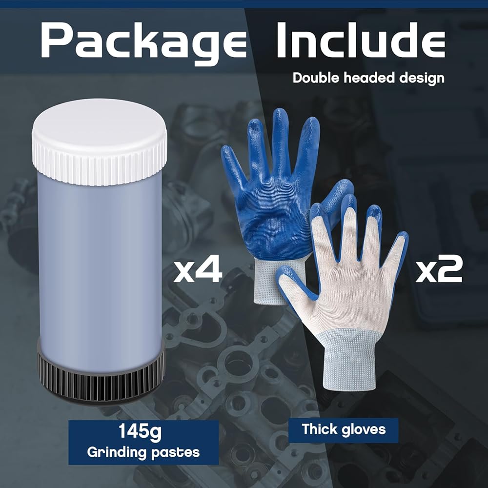 Double ended valve grinding paste, one end has fine grade paste, the other end has a coarse grade paste. Specially adapted compound for grinding automotive valves,