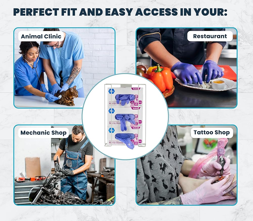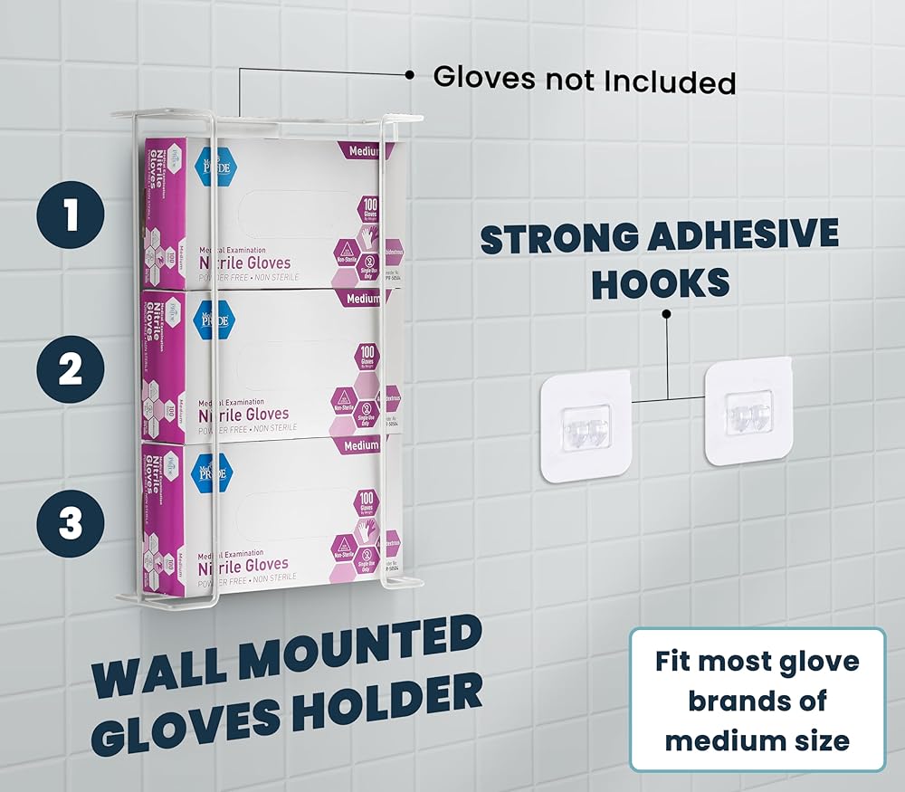 • MULTI-PURPOSE GLOVE DISPENSER. This holder provides easy access to grab a pair of gloves when needed, making it ideal for use in washrooms, hospitals, food service industries, offices, kitchens and any industry where employees are required to wear gloves.
